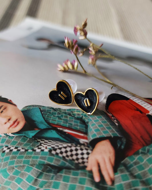Tiny Hearts earrings inspired by BTS | 14k gold plated BLACK ๐ค
