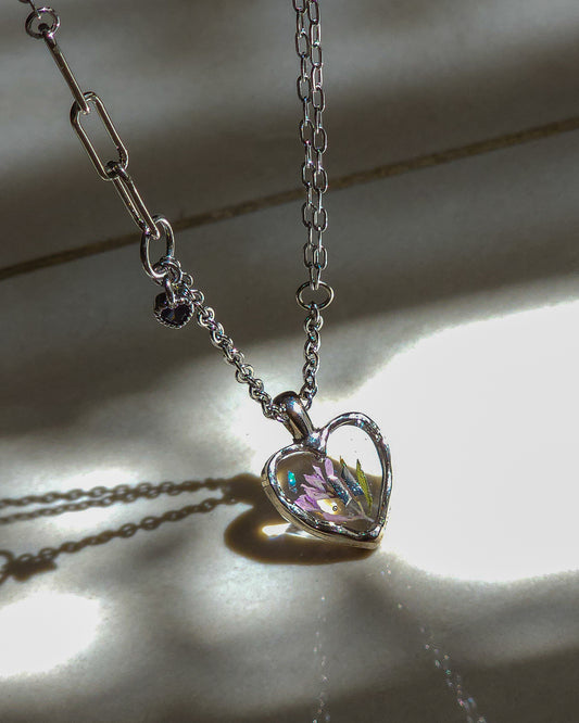 Heart-shaped floral necklace inspired by BTS 🌷 silver color