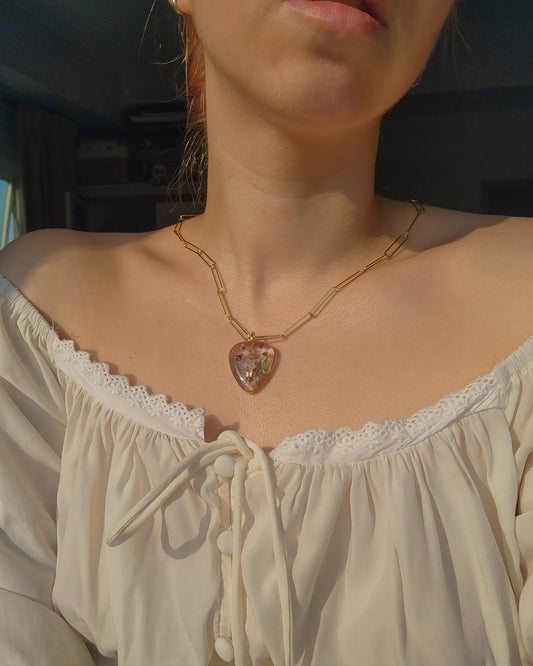 Heart-shaped floral necklace inspired by BTS ๐ท silver color