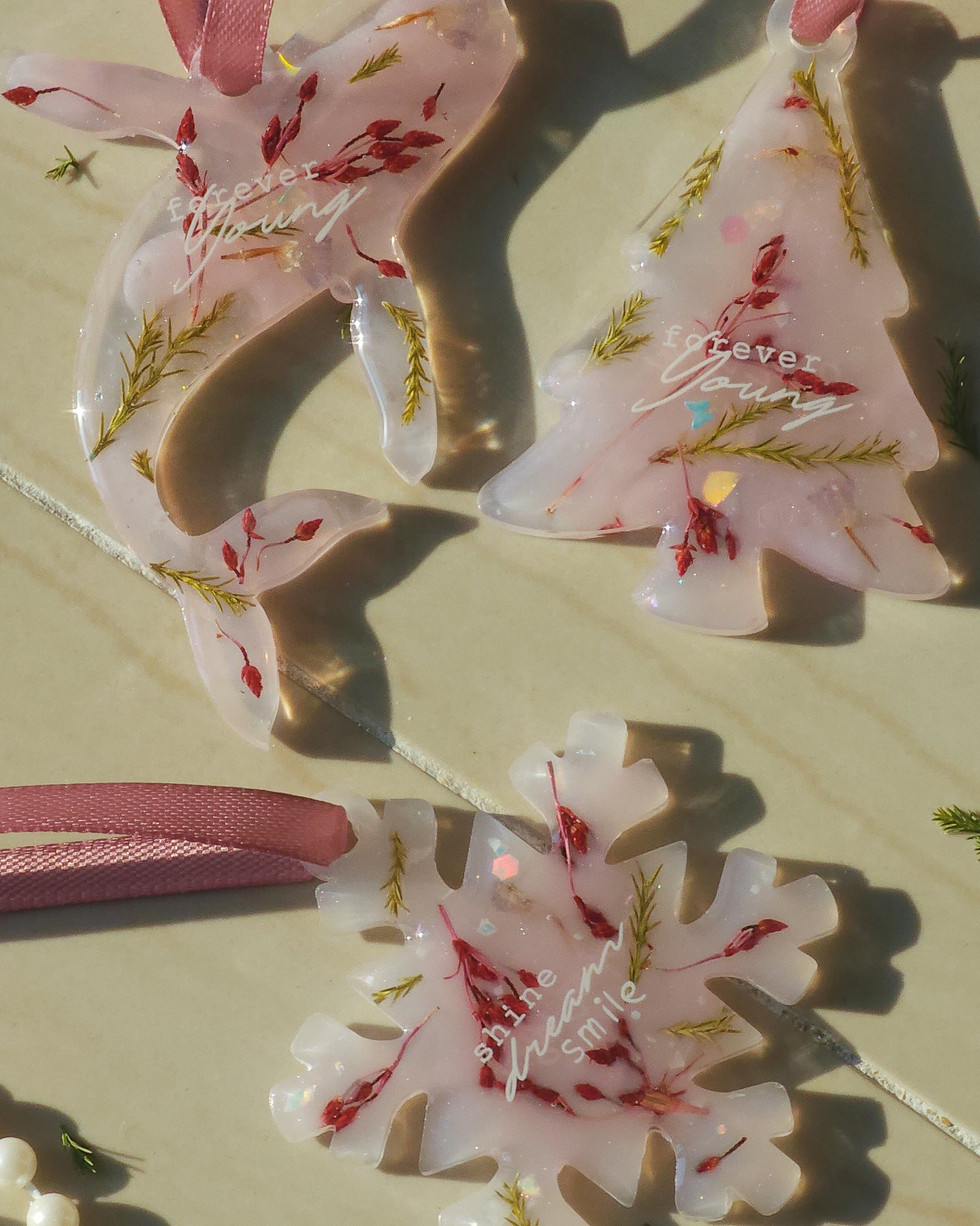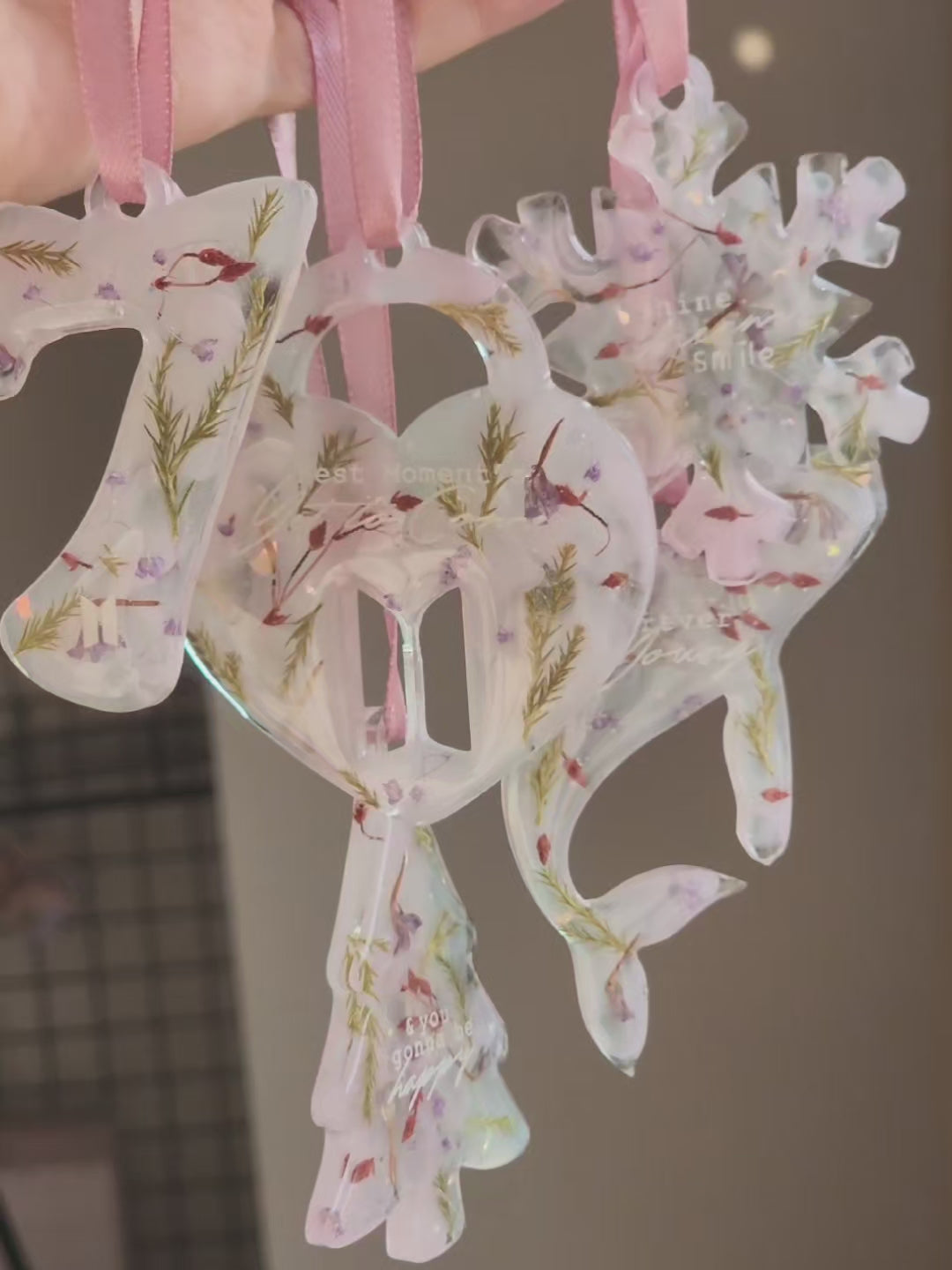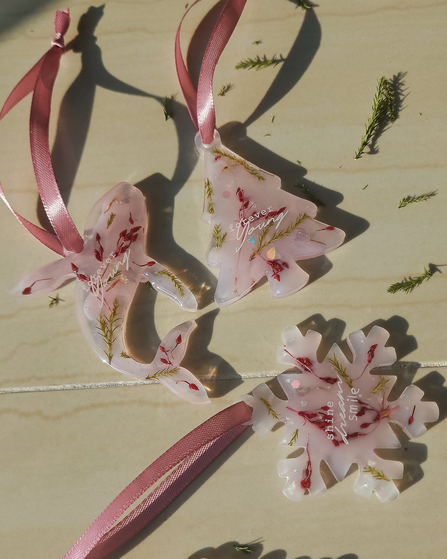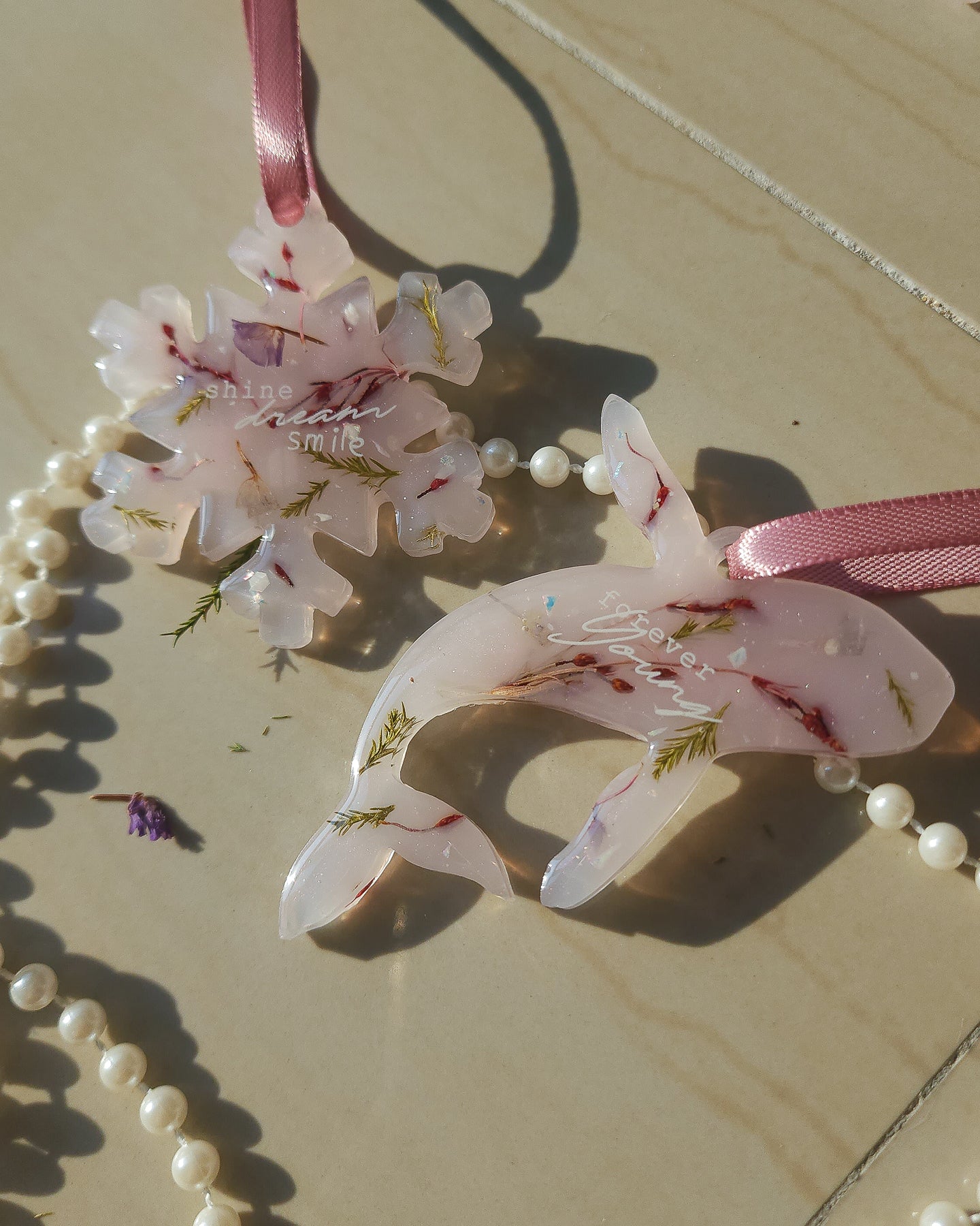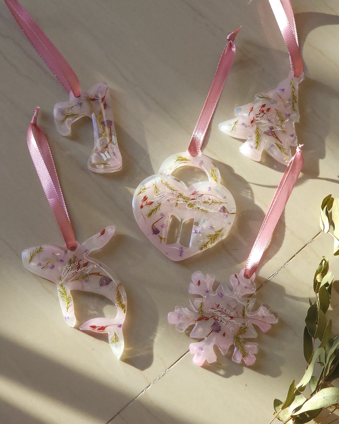 Epoxy Resin Ornaments with Real Flowers 🎀 Milky Pink
