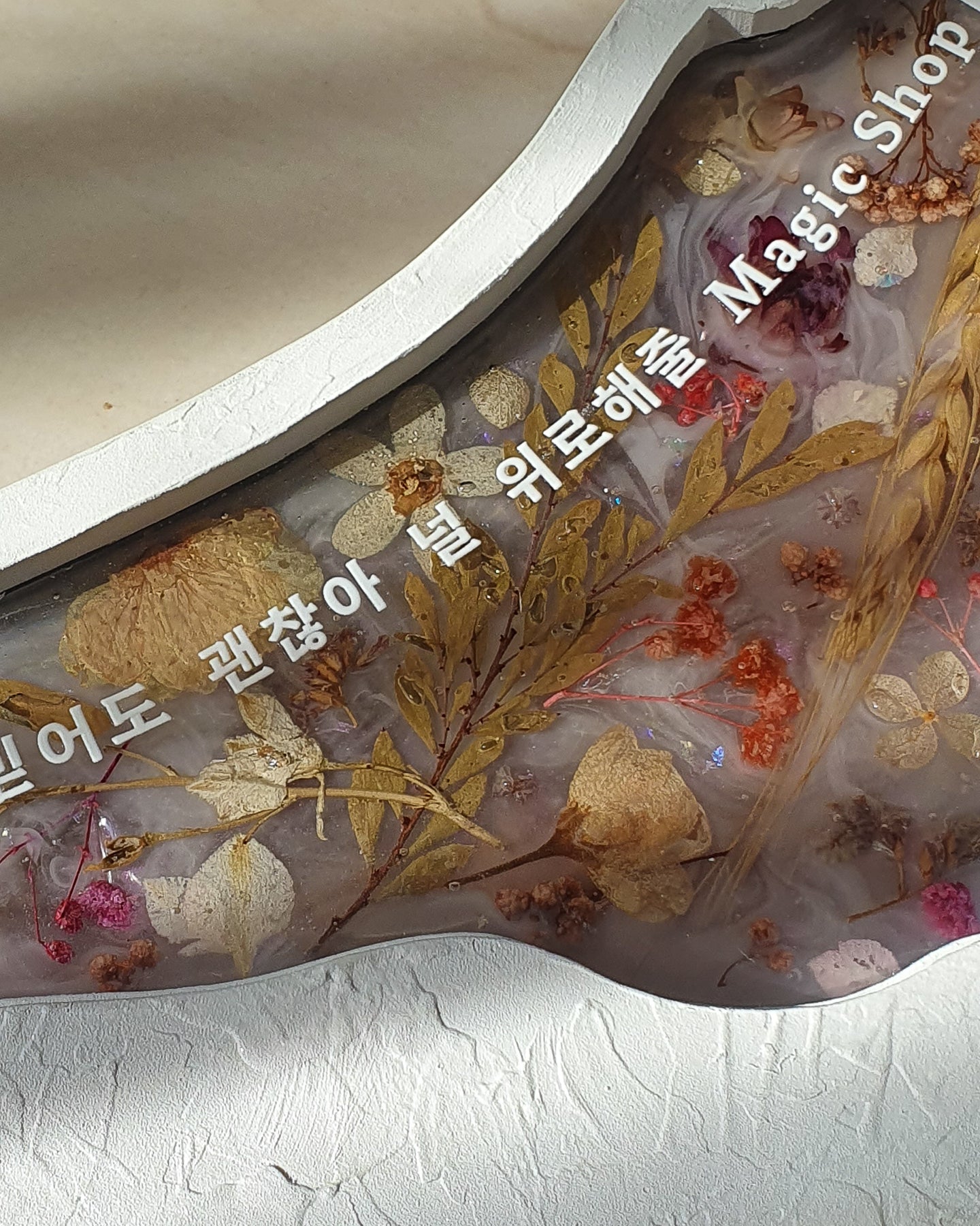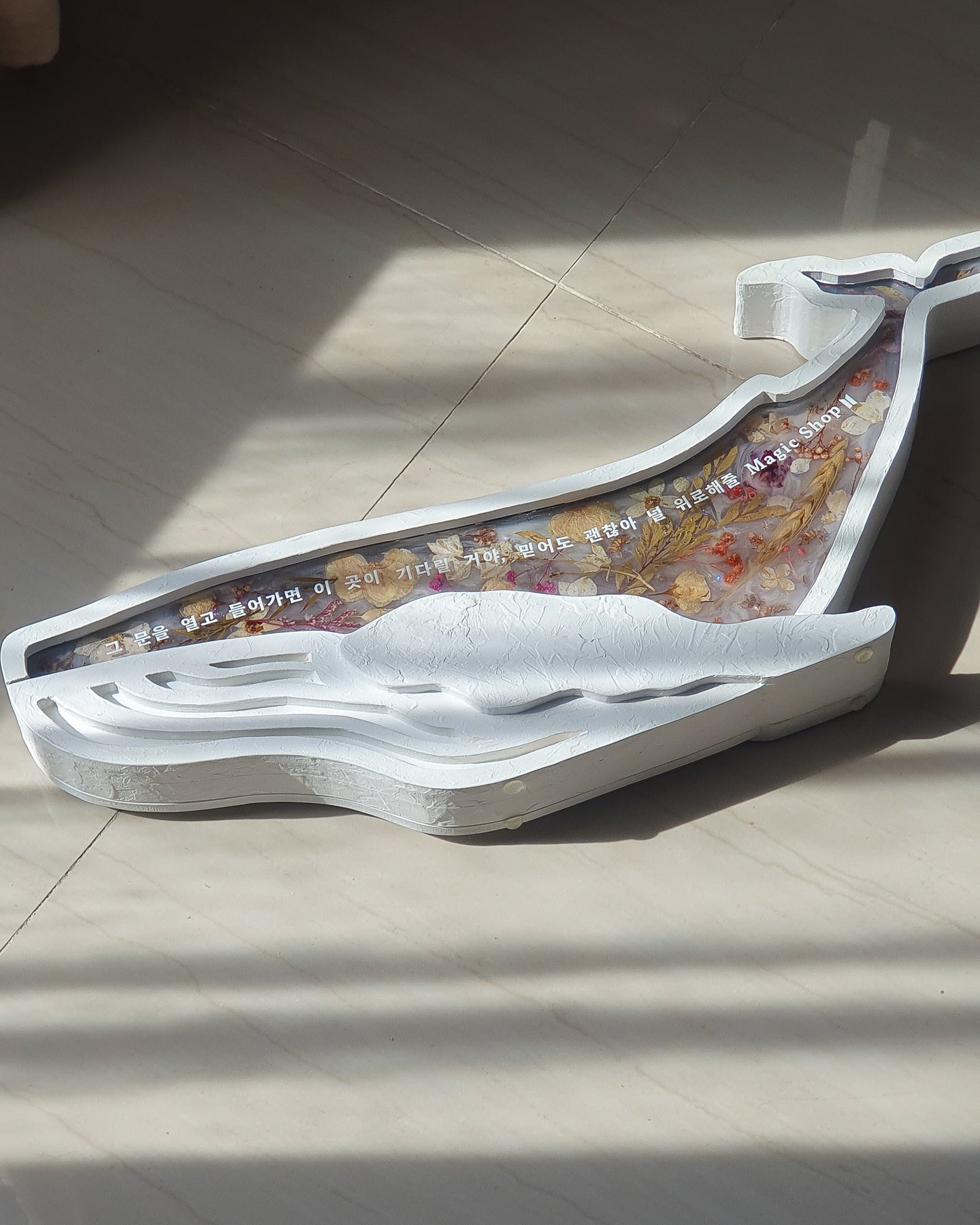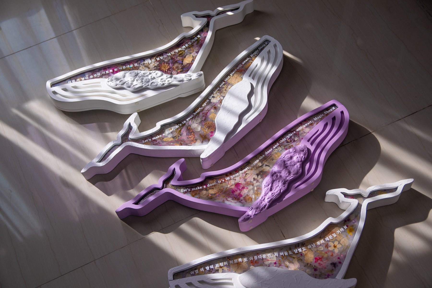 One side of the whale features Magic Shop lyric in English, while the other side displays the same lyric in Korean.