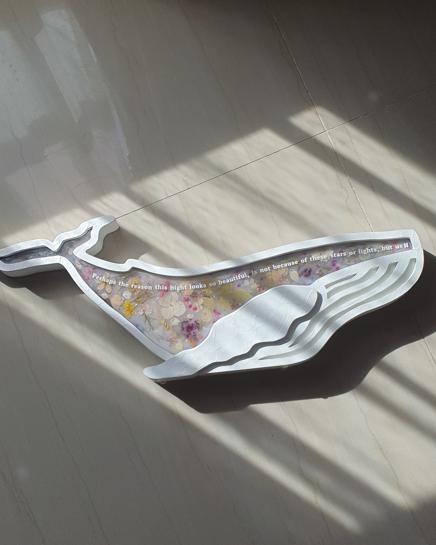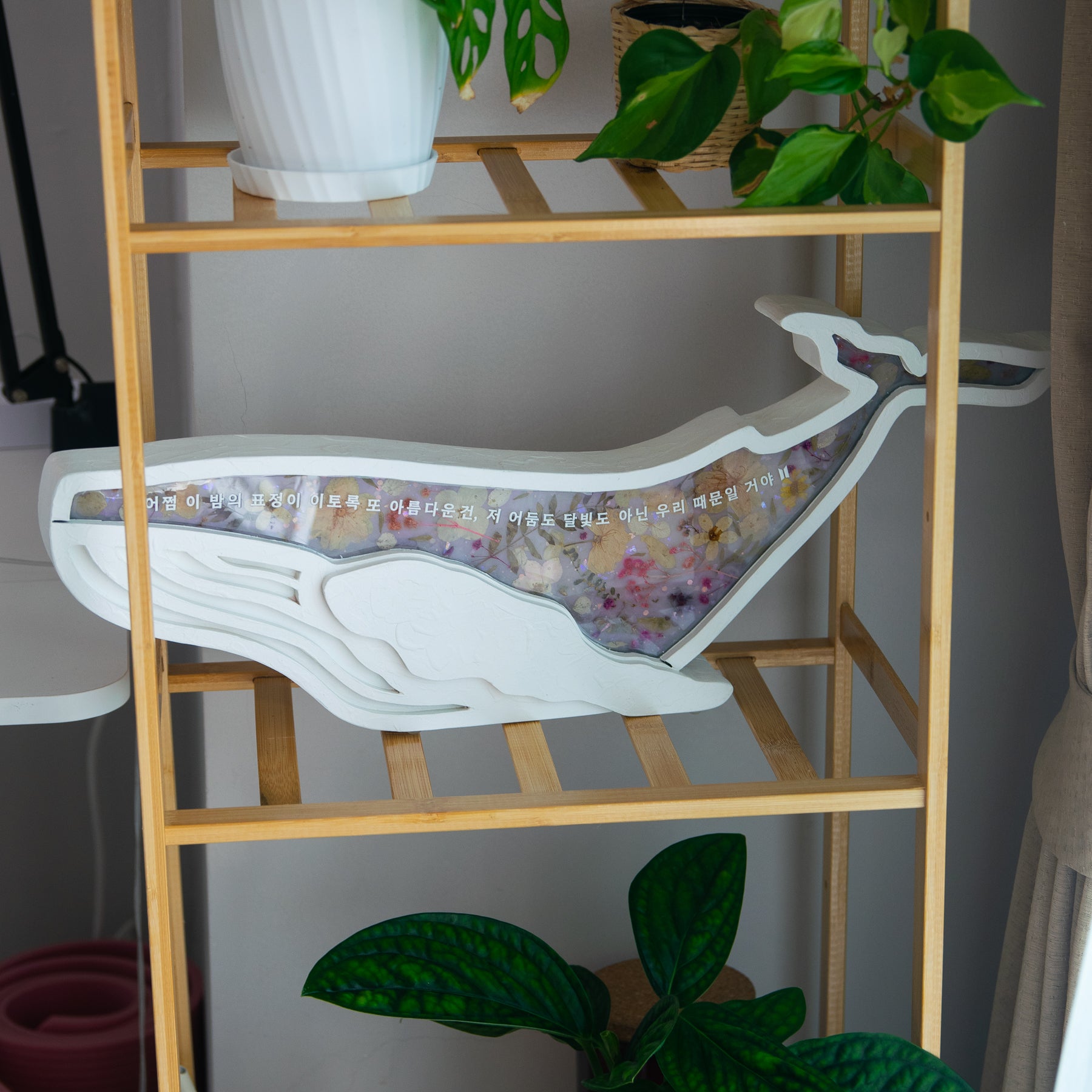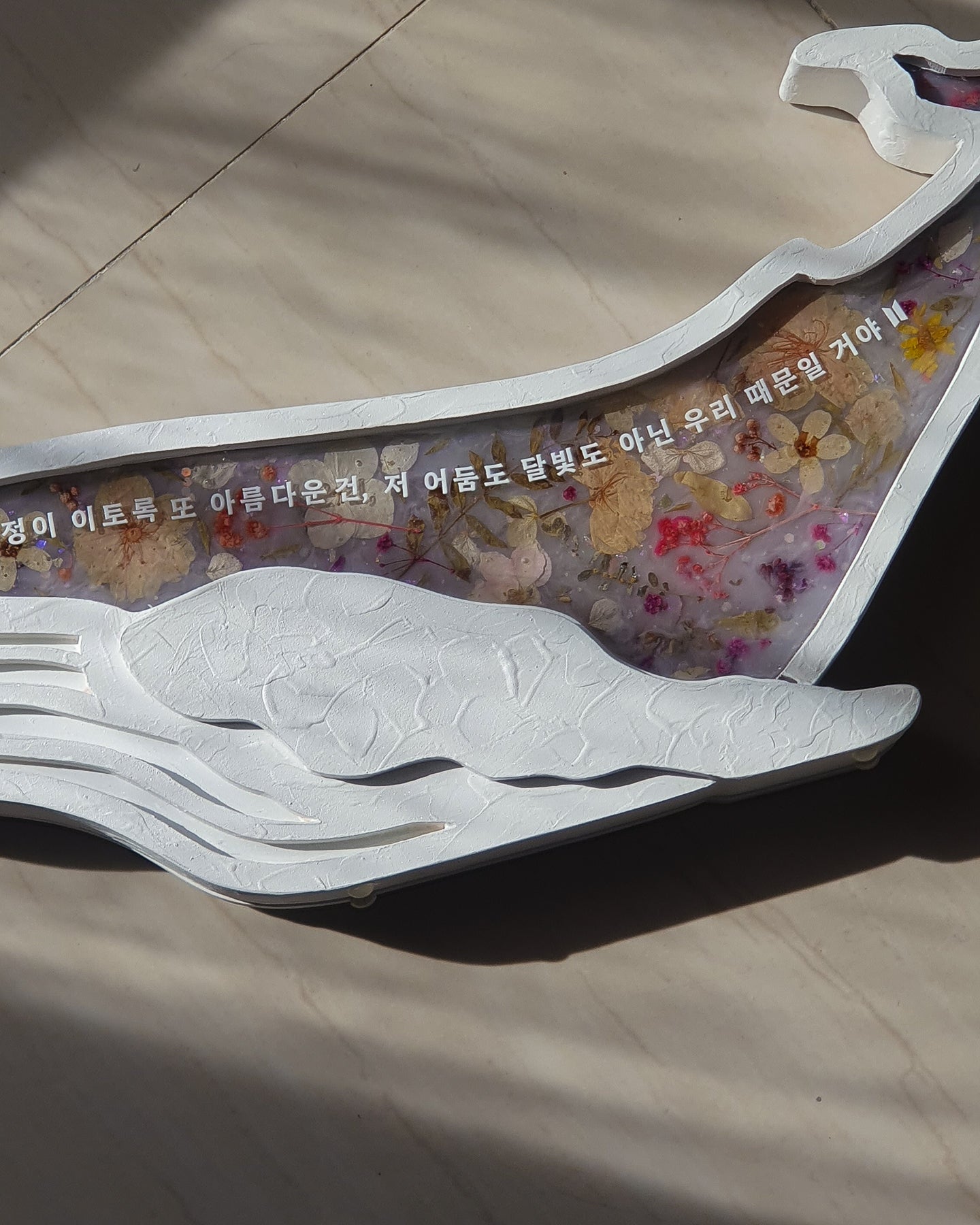 One side of the whale features Mikrokosmos lyric in English, while the other side displays the same lyric in Korean.