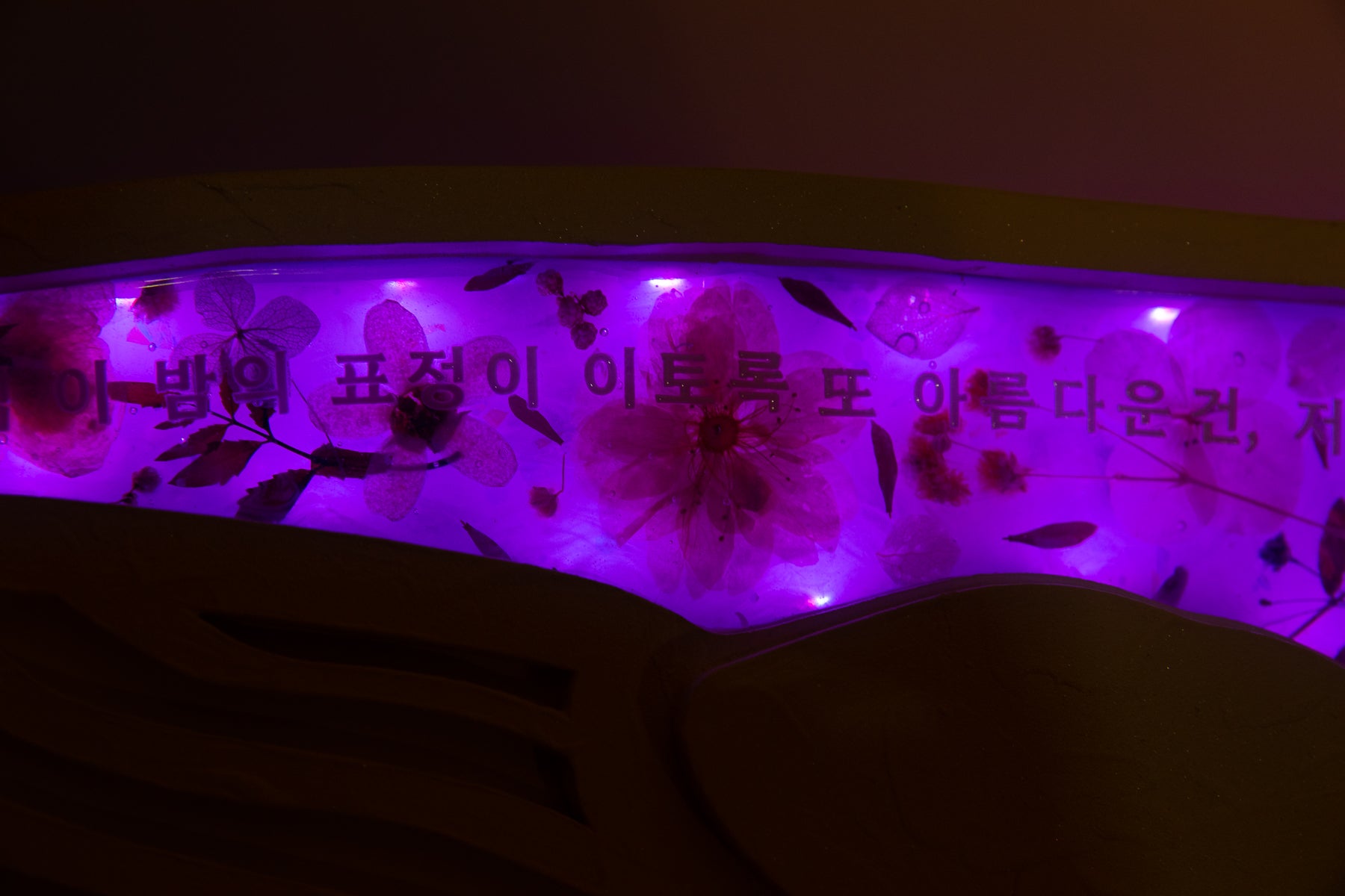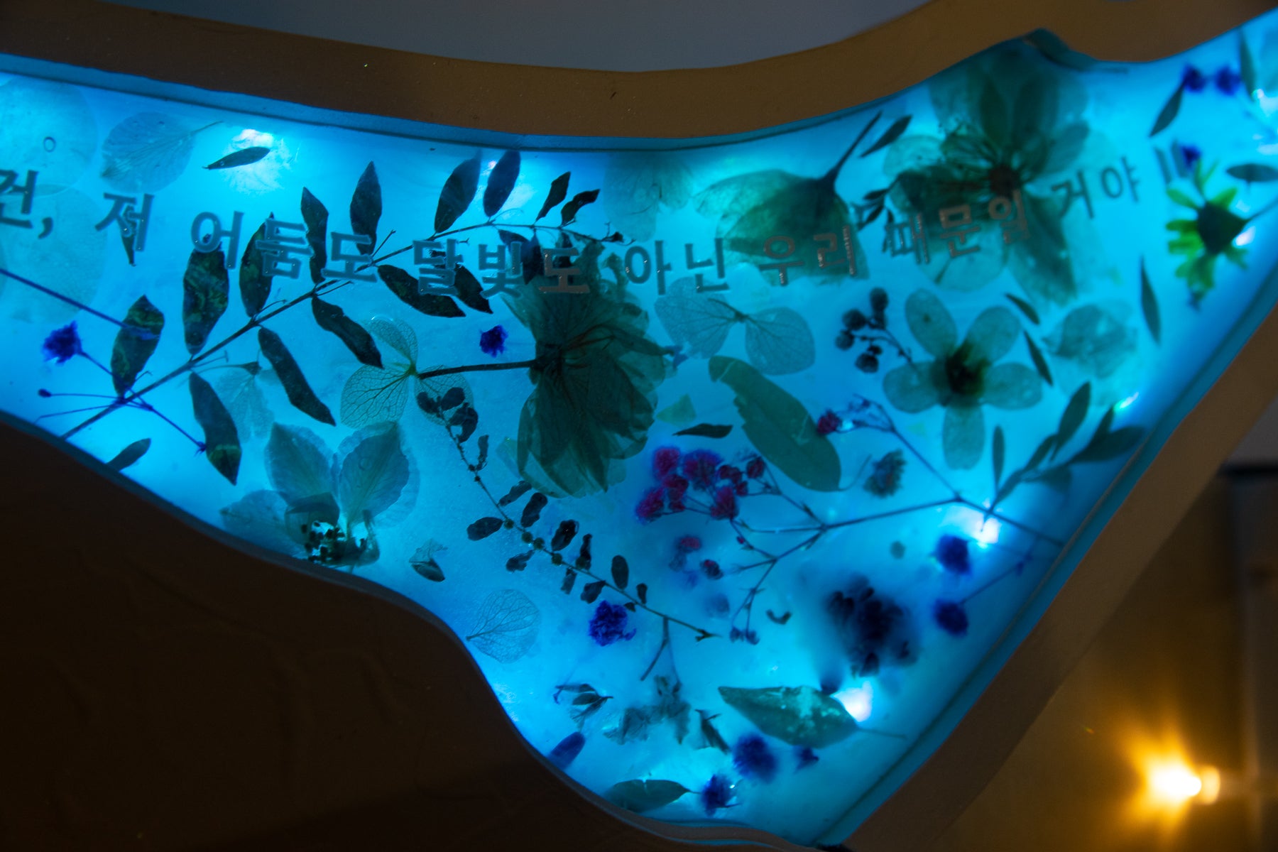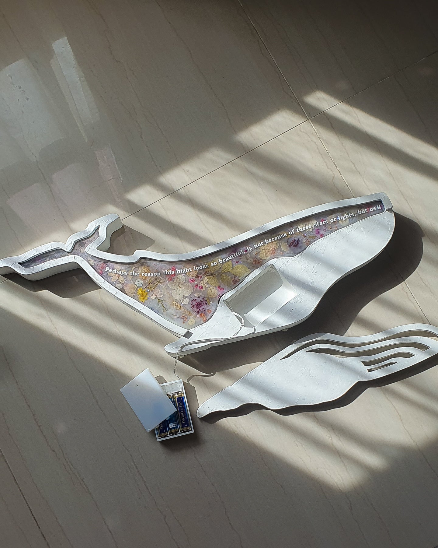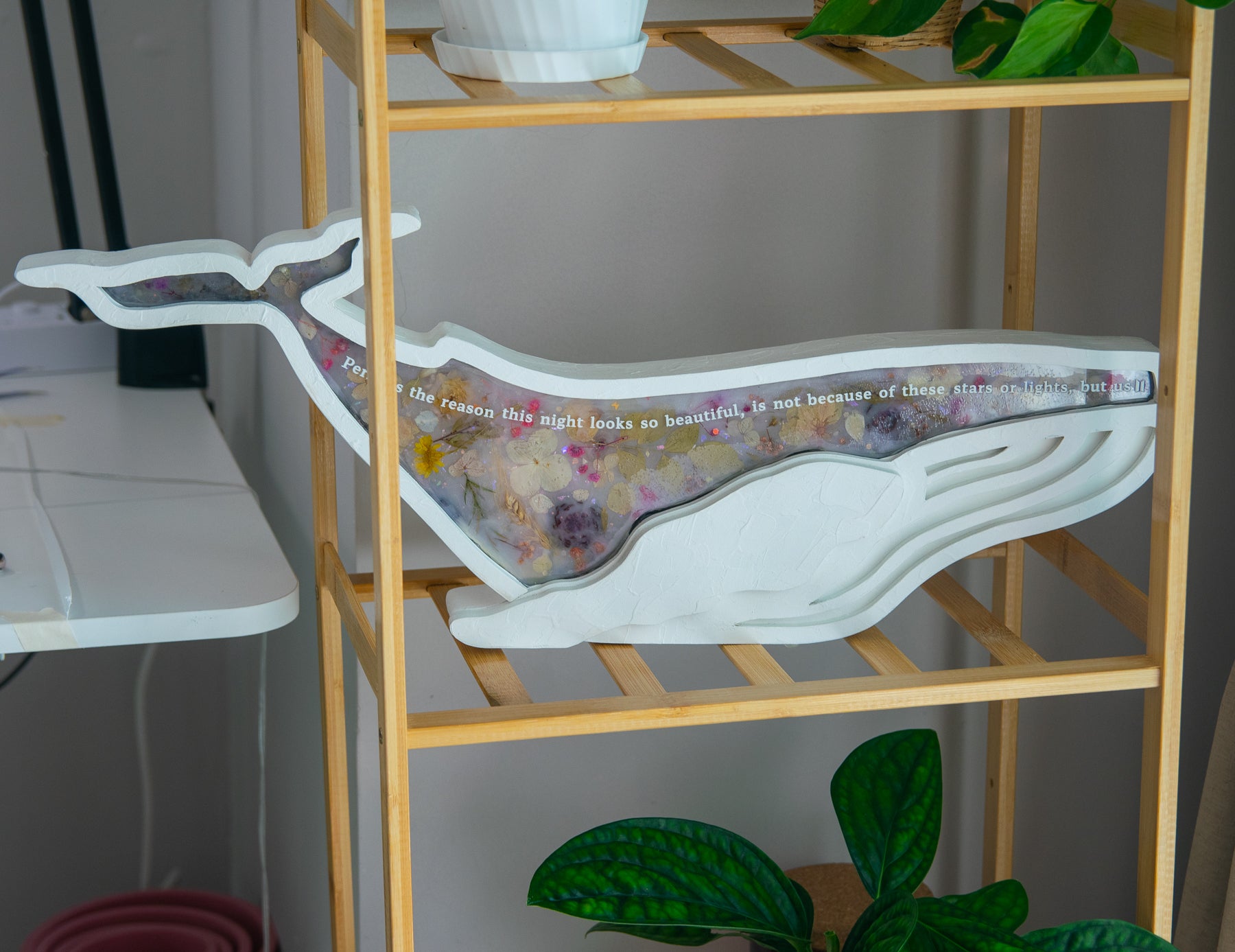 One side of the whale features Mikrokosmos lyric in English, while the other side displays the same lyric in Korean.